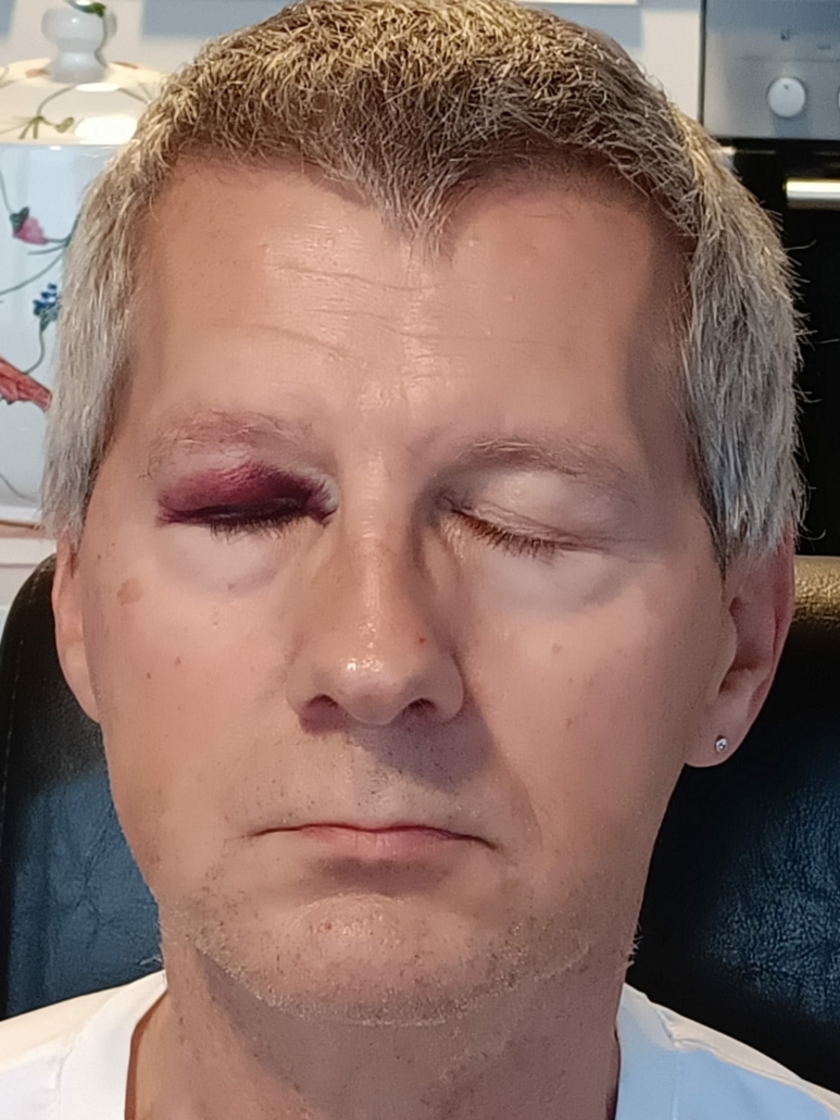 Two weeks ago, I had an accident in my bathroom when leaving the shower. I’m not sure if I lost my consciousness or my balance, but I crashed with my right eye on my right knee. Nothing serious happened, but I look like a boxer after a lost fight.